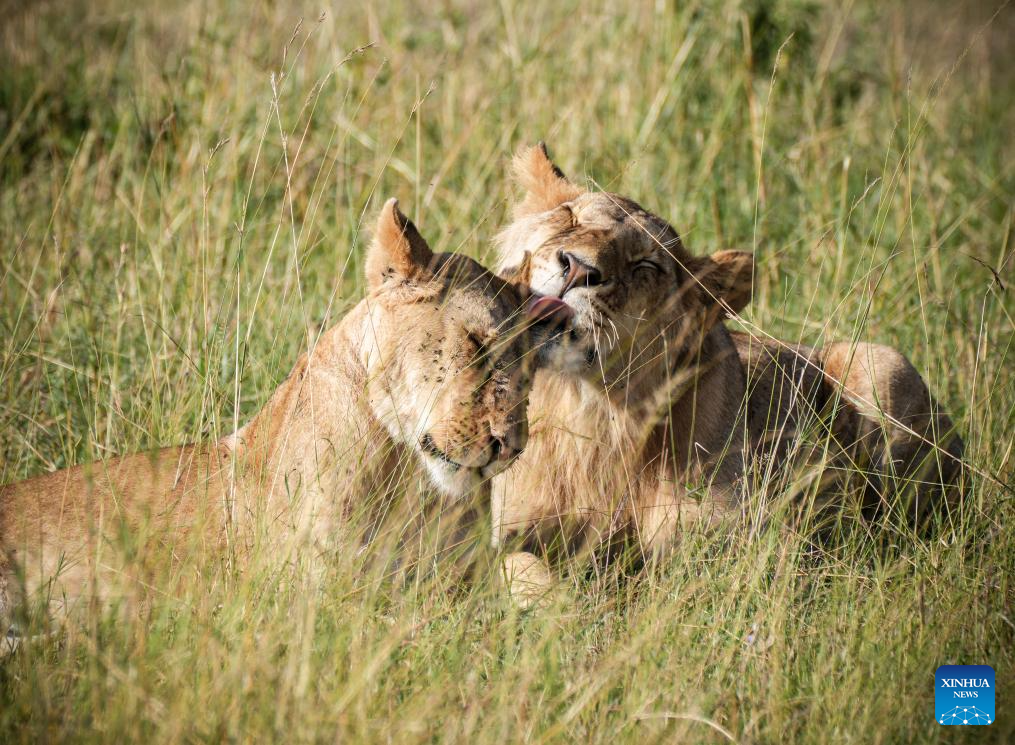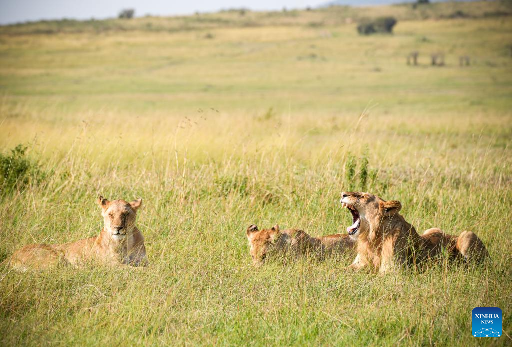 Lions are pictured in the Masai Mara National Reserve in Kenya, on Sept. 7, 2025. Kenya's southwestern county of Narok is home to the world's famous Masai Mara National Reserve where tourists flock to during the country's peak tourism season from July through October to watch the wildebeest migration.