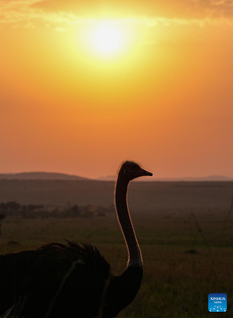 An ostrich is pictured in the Masai Mara National Reserve in Kenya, on Sept. 6, 2025. Kenya's southwestern county of Narok is home to the world's famous Masai Mara National Reserve where tourists flock to during the country's peak tourism season from July through October to watch the wildebeest migration.