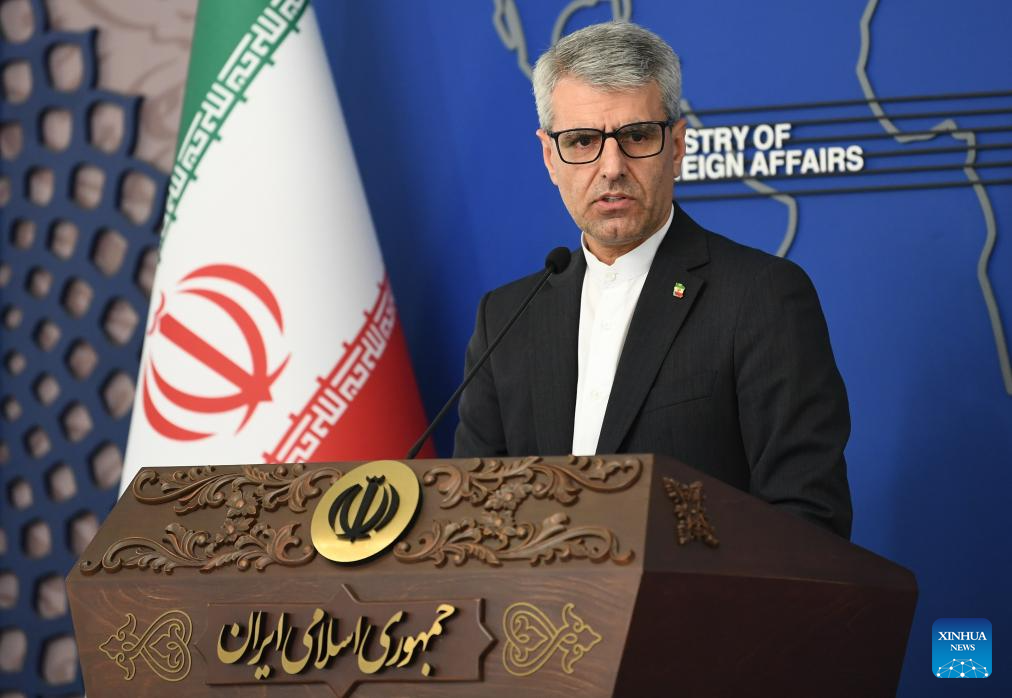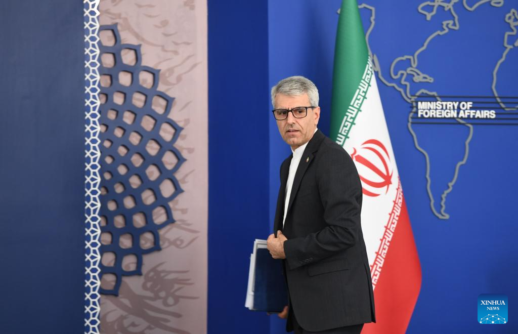 Iranian Foreign Ministry spokesman Esmaeil Baghaei attends a weekly press conference in Tehran, Iran, Sept. 8, 2025. Baghaei said Monday that the latest talks with the International Atomic Energy Agency (IAEA) on Iran's nuclear program had "reflected a positive trend." (Xinhua/Sha Dati)