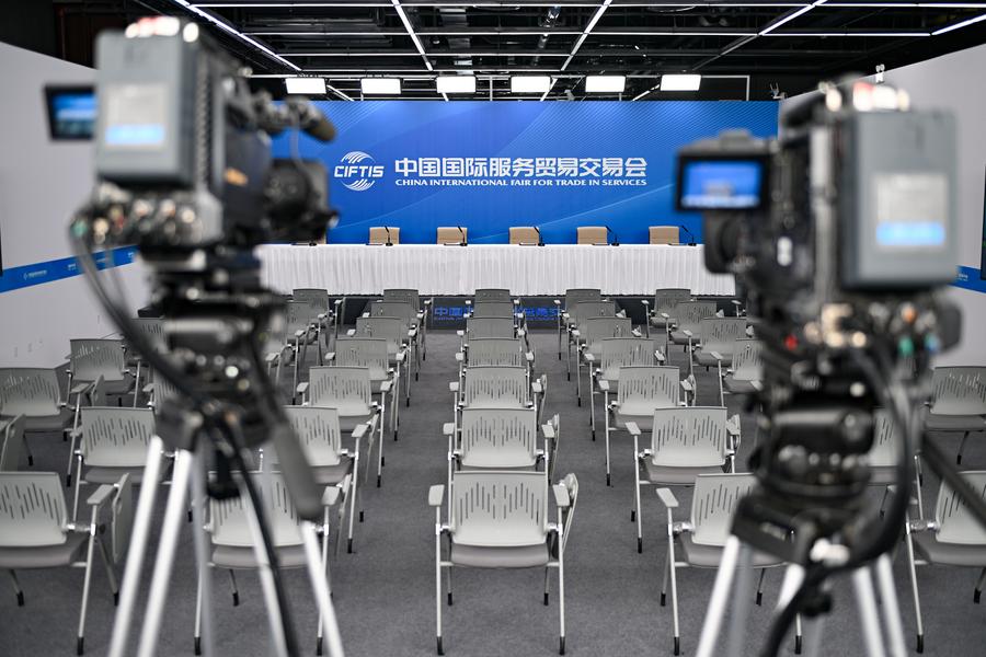 This photo taken on Sept. 9, 2025 shows a view of Fuyan, the mascot of the upcoming 2025 China International Fair for Trade in Services (CIFTIS), at Shougang Park, the venue of CIFTIS, in Beijing, capital of China. (Xinhua/Li Xin)A visitor walks past an installation at the venue of the upcoming 2025 China International Fair for Trade in Services (CIFTIS) at Shougang Park in Beijing, capital of China, Sept. 9, 2025. (Xinhua/Chen Zhonghao)This photo taken on Sept. 9, 2025 shows a view of the press conference hall for the upcoming 2025 China International Fair for Trade in Services (CIFTIS) at Shougang Park in Beijing, capital of China. (Xinhua/Chen Zhonghao)Three exhibits representing the Beijing silk figurine, a national intangible cultural heritage, are pictured at the venue of the upcoming 2025 China International Fair for Trade in Services (CIFTIS) at Shougang Park in Beijing, capital of China, Sept. 9, 2025. (Xinhua/Xiao Xiao)A visitor takes photos of a booth of China National Offshore Oil Corporation (CNOOC) at the venue of the upcoming 2025 China International Fair for Trade in Services (CIFTIS) at Shougang Park in Beijing, capital of China, Sept. 9, 2025. (Xinhua/Xiao Xiao)■