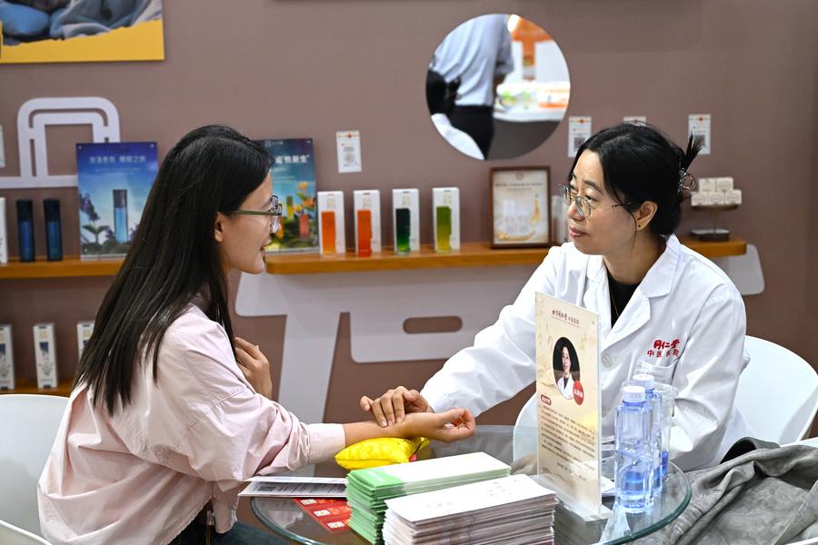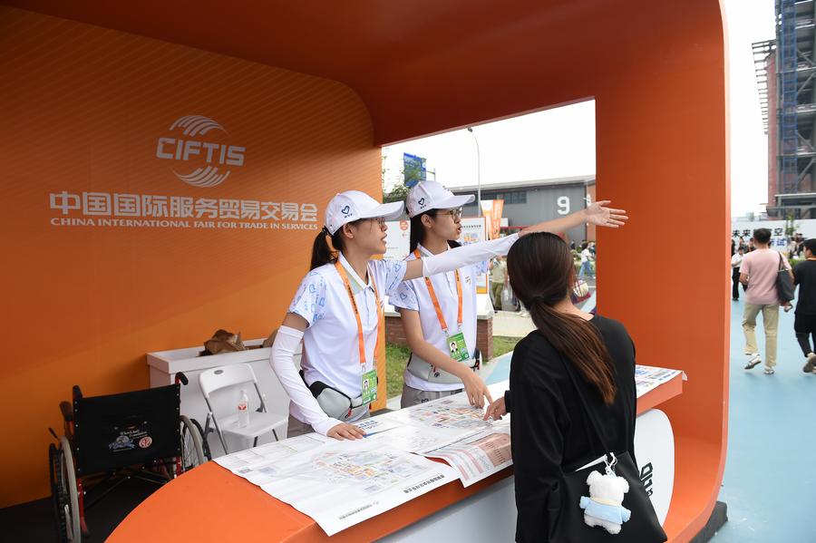 Exhibitors take photos with a sign of the 2025 China International Fair for Trade in Services (CIFTIS) in Beijing, capital of China, Sept. 10, 2025. The 2025 CIFTIS opened in Beijing on Wednesday, themed "Embrace Intelligent Technologies, Empower Trade in Services." (Xinhua/Xu Qin)People visit the 2025 China International Fair for Trade in Services (CIFTIS) in Beijing, capital of China, Sept. 10, 2025. The 2025 CIFTIS opened in Beijing on Wednesday, themed "Embrace Intelligent Technologies, Empower Trade in Services." (Xinhua/Chen Yehua)Volunteers gives instructions to a visitor during the 2025 China International Fair for Trade in Services (CIFTIS) in Beijing, capital of China, Sept. 10, 2025. (Xinhua/Liu Lingyi)A visitor takes photos of a robot during the 2025 China International Fair for Trade in Services (CIFTIS) in Beijing, capital of China, Sept. 10, 2025. (Xinhua/Zhang Xinjing)An exhibitor (L) experiences traditional Chinese medicine consultation during the 2025 China International Fair for Trade in Services (CIFTIS) in Beijing, capital of China, Sept. 10, 2025. (Xinhua/Sui Shangjun)A visitor plays football with a robot during the 2025 China International Fair for Trade in Services (CIFTIS) in Beijing, capital of China, Sept. 10, 2025. (Xinhua/Ding He)People visit a booth of Pop Mart during the 2025 China International Fair for Trade in Services (CIFTIS) in Beijing, capital of China, Sept. 10, 2025. (Xinhua/Chen Yehua)A staff member introduces refrigerator magnets during the 2025 China International Fair for Trade in Services (CIFTIS) in Beijing, capital of China, Sept. 10, 2025. (Xinhua/Li Xin)■