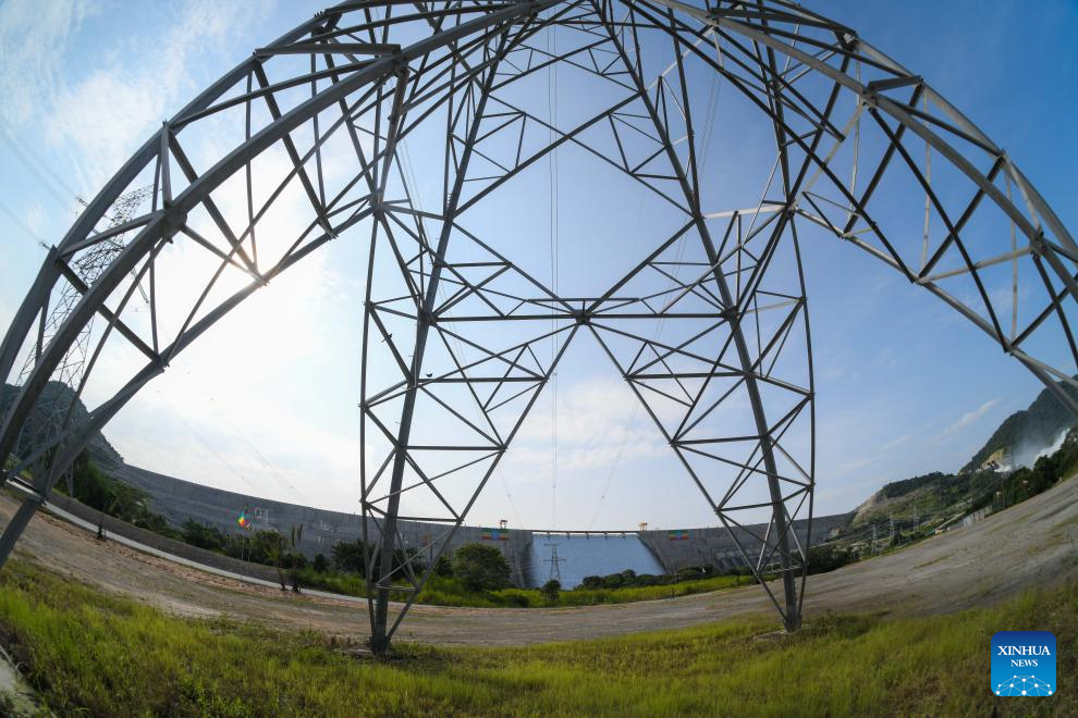 Photo taken on Sept. 9, 2025, shows the transmission lines of the Grand Ethiopian Renaissance Dam (GERD) in the northwestern Benishangul-Gumuz region, Ethiopia. Ethiopia on Tuesday officially inaugurated the Grand Ethiopian Renaissance Dam (GERD), the largest hydropower project in Africa. (Xinhua/Michael Tewelde)