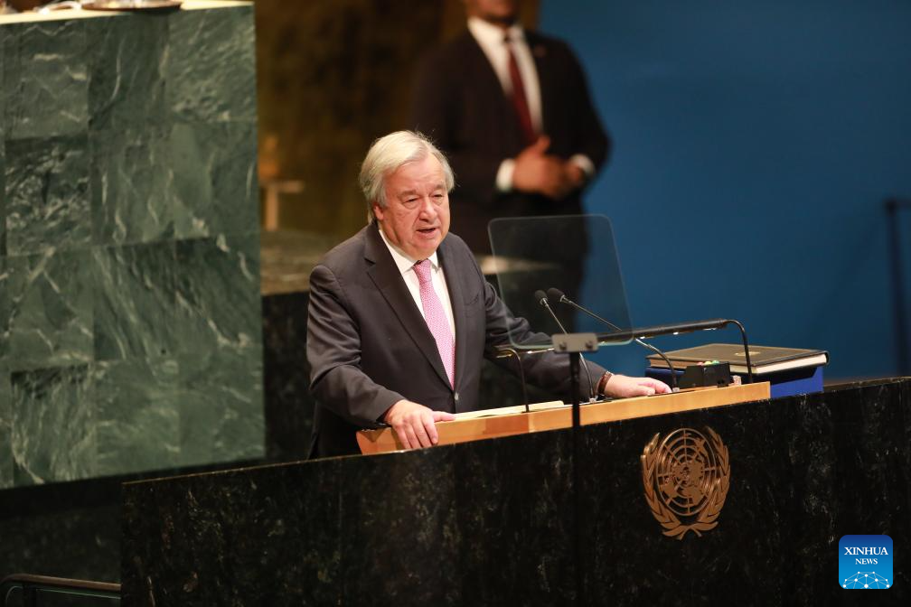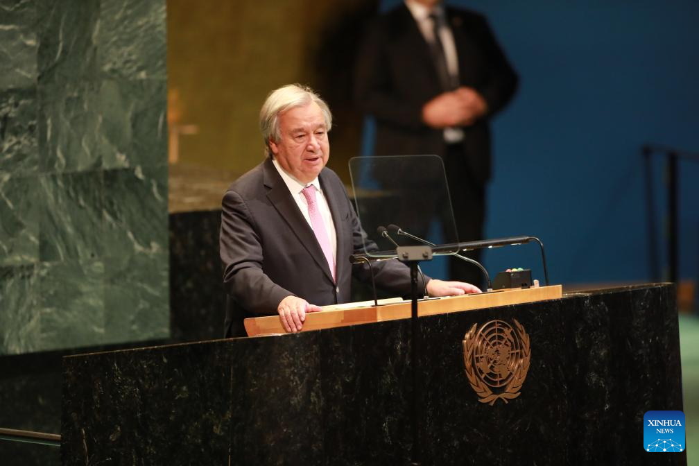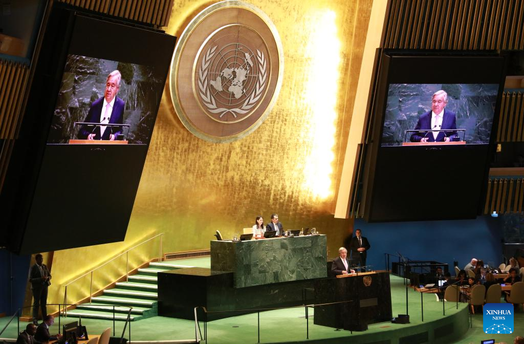 UN Secretary-General Antonio Guterres speaks at the opening of the 80th session at the UN headquarters in New York, Sept. 9, 2025. The 80th session of the United Nations General Assembly (UNGA) was declared open by Annalena Baerbock, the new president of the General Assembly, at the UN headquarters in New York on Tuesday afternoon. (Xinhua/Xie E)