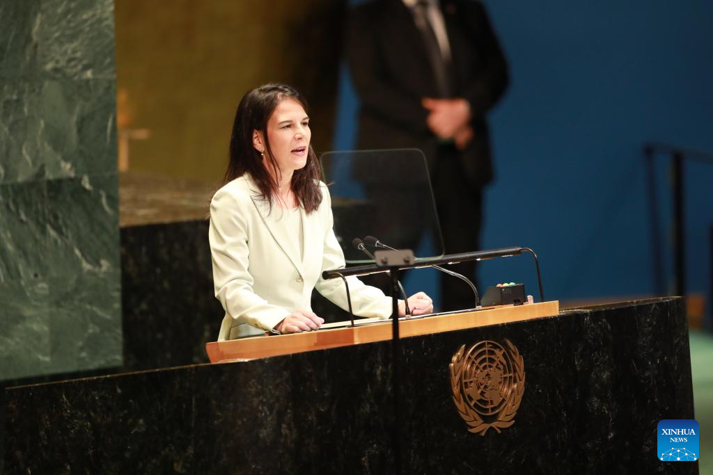 Annalena Baerbock, president of the 80th session of the United Nations General Assembly (UNGA), speaks at the opening of the 80th session at the UN headquarters in New York, Sept. 9, 2025. The 80th session of the United Nations General Assembly (UNGA) was declared open by Annalena Baerbock, the new president of the General Assembly, at the UN headquarters in New York on Tuesday afternoon. (Xinhua/Xie E)