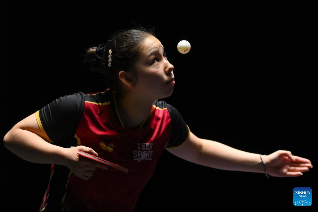 Anna Hursey of Wales serves during the women's singles round of 32 match against Sun Yingsha of China at the 2025 World Table Tennis (WTT) Champions Macao in Macao, south China, Sept.10, 2025. (Xinhua/Cheong Kam Ka)