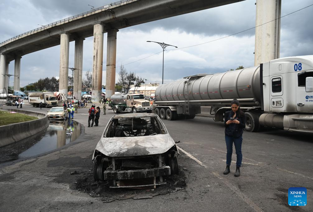 A burned car is pictured at the gas tanker truck explosion accident site in Mexico City, Mexico, Sept. 10, 2025. Fifty-seven people were injured after a gas tanker truck exploded on Wednesday in Mexico City, with 19 of them in serious condition, local authorities said. (Str/Xinhua)