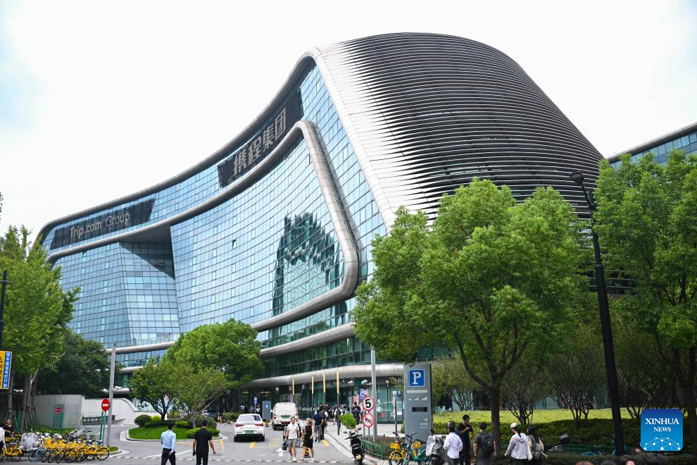The office building of Trip.com Group is seen in Shanghai Hongqiao Airport Economic Zone in east China's Shanghai, Sept. 10, 2025. Covering an area of 13.89 square kilometers, Shanghai Hongqiao Airport Economic Zone, the first national-level airport economic zone in the Yangtze River Delta, has now gathered over 4,000 enterprises, among which foreign-funded enterprises account for about a quarter. In 2024, the economic aggregate of the economic zone reached 21.1 billion yuan (about 2.96 billion U.S. dollars). (Xinhua/Chen Haoming)