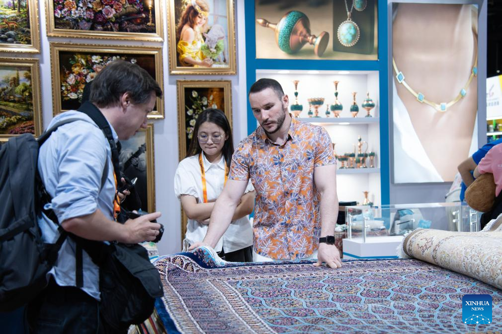 This photo taken on Sept. 10, 2025 shows an Iranian booth of the thematic exhibitions during the 2025 China International Fair for Trade in Services (CIFTIS) at Shougang Park in Beijing, capital of China. The 2025 CIFTIS opened in Beijing on Wednesday, themed "Embrace Intelligent Technologies, Empower Trade in Services."