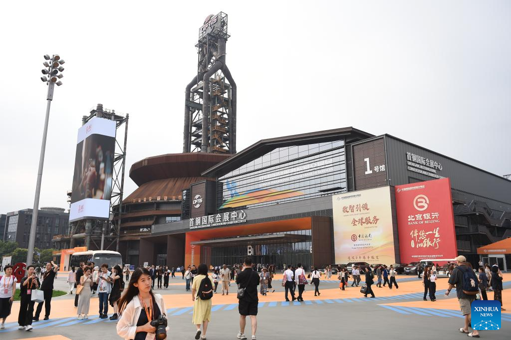 People visit the 2025 China International Fair for Trade in Services (CIFTIS) in Beijing, capital of China, Sept. 10, 2025. The 2025 CIFTIS opened in Beijing on Wednesday, themed "Embrace Intelligent Technologies, Empower Trade in Services." (Xinhua/Liu Lingyi)