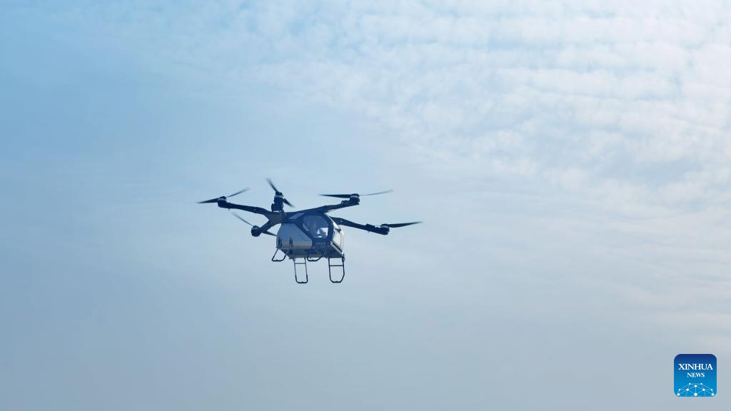 The "Land Aircraft Carrier" is pictured during a demonstration in Ras Al Khaimah, the United Arab Emirates (UAE), Sept. 10, 2025. "Land Aircraft Carrier," a flying car developed by Chinese flying car company XPENG AEROHT, on Wednesday received a special flight permit in Ras Al Khaimah, the northernmost emirate of the UAE. (XPENG/Handout via Xinhua)
