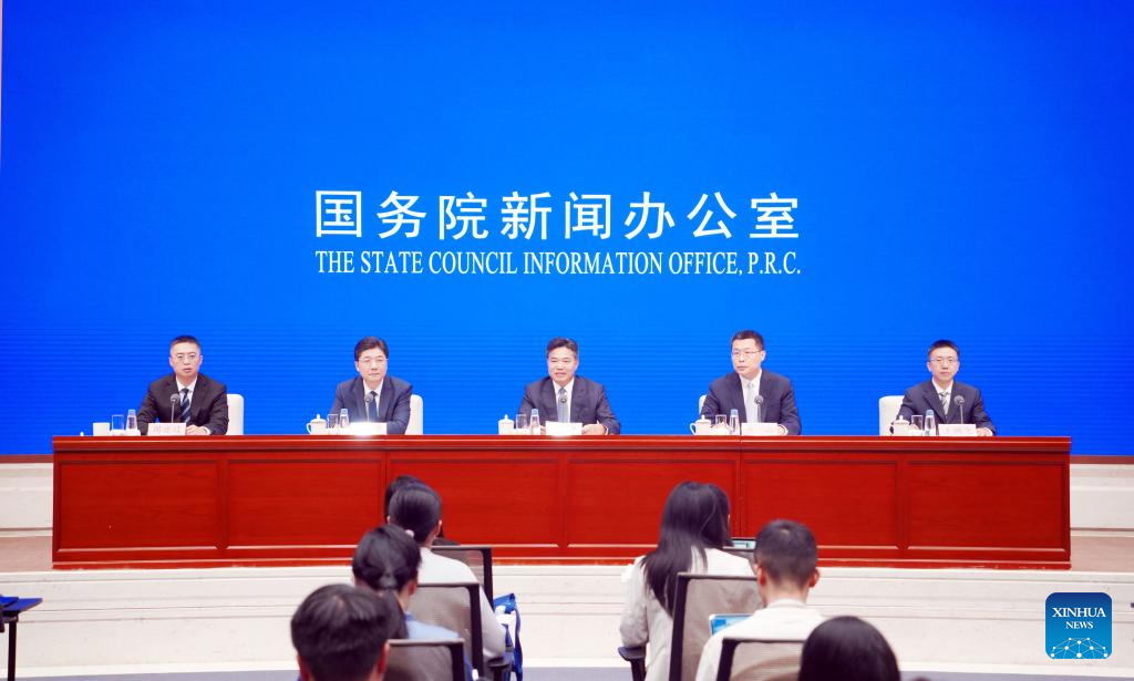 The State Council Information Office (SCIO) holds a press conference on the 4th Global Digital Trade Expo in Beijing, capital of China, Sept. 11, 2025. (Xinhua/Pan Xu)