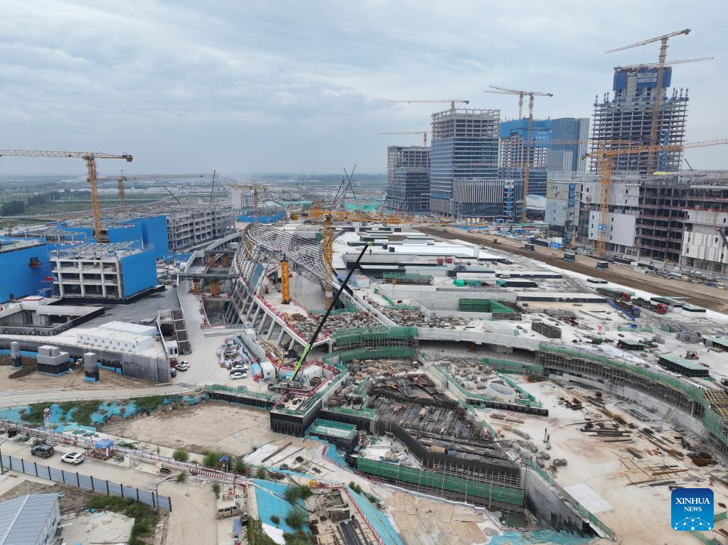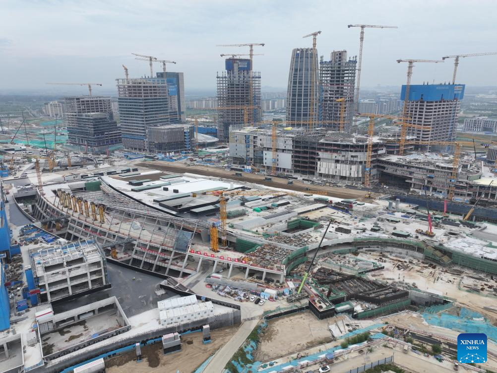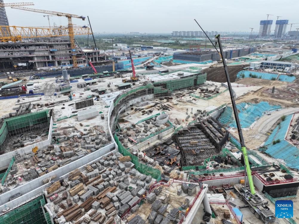 An aerial drone photo taken on Sept. 12, 2025 shows a construction site of an underground section of Xiong'an-Xinzhou high-speed railway in Xiong'an, north China's Hebei Province. The underground section of Xiong'an-Xinzhou high-speed railway in the start-up area of Xiong'an New Area is now under construction.