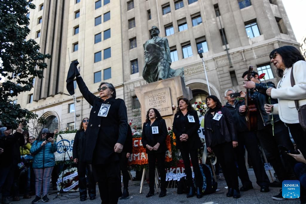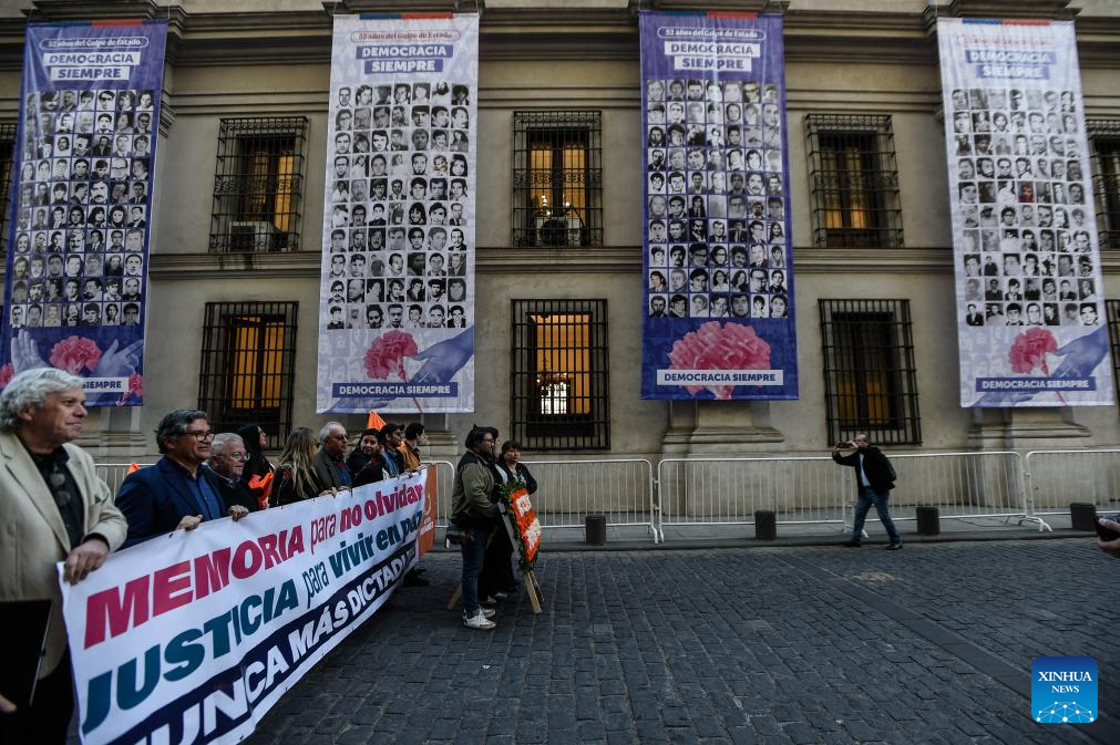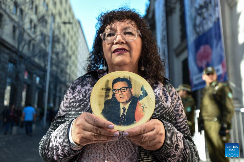 People attend an event to pay homage to former Chilean President Salvador Allende and to commemorate the 52nd anniversary of the military coup against Allende, near La Moneda Palace in Santiago, capital of Chile, Sept. 11, 2025. Then-Commander-in-chief of the Chilean army Augusto Pinochet launched a military coup to overthrow the democratically-elected government of Allende on Sept. 11, 1973. Allende was killed during the coup, marking the beginning of a 17-year period of military regime in Chile. (Photo by Jorge Villegas/Xinhua)