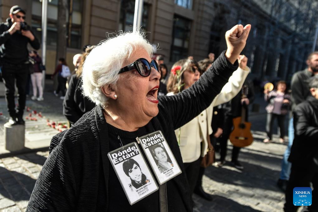 A woman attends an event to pay homage to former Chilean President Salvador Allende and to commemorate the 52nd anniversary of the military coup against Allende, near La Moneda Palace in Santiago, capital of Chile, Sept. 11, 2025. Then-Commander-in-chief of the Chilean army Augusto Pinochet launched a military coup to overthrow the democratically-elected government of Allende on Sept. 11, 1973. Allende was killed during the coup, marking the beginning of a 17-year period of military regime in Chile. (Photo by Jorge Villegas/Xinhua)