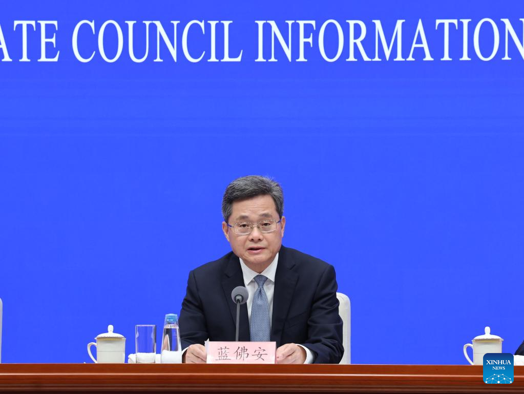 Chinese Finance Minister Lan Fo'an speaks at a press conference held by the State Council Information Office (SCIO) on fiscal reform and development achievements in the 14th Five-Year Plan period (2021-2025) in Beijing, capital of China, Sept. 12, 2025. (Xinhua/Jin Liwang)