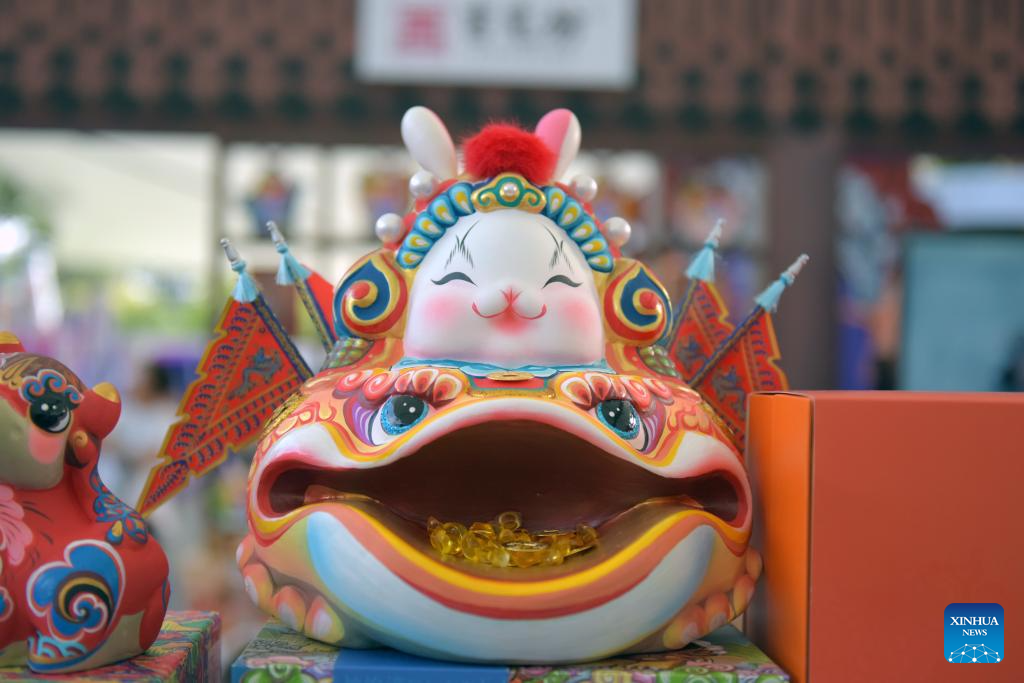 A rabbit-themed cultural and creative product is displayed at the 2025 China International Fair for Trade in Services (CIFTIS) in Beijing, capital of China, Sept. 12, 2025. The 2025 CIFTIS is held from Sept. 10 to 14 at the Shougang Park in Beijing. This year's fair features a wide range of cultural and creative products, which are highly popular among visitors. (Xinhua/Zhang Xinjing)