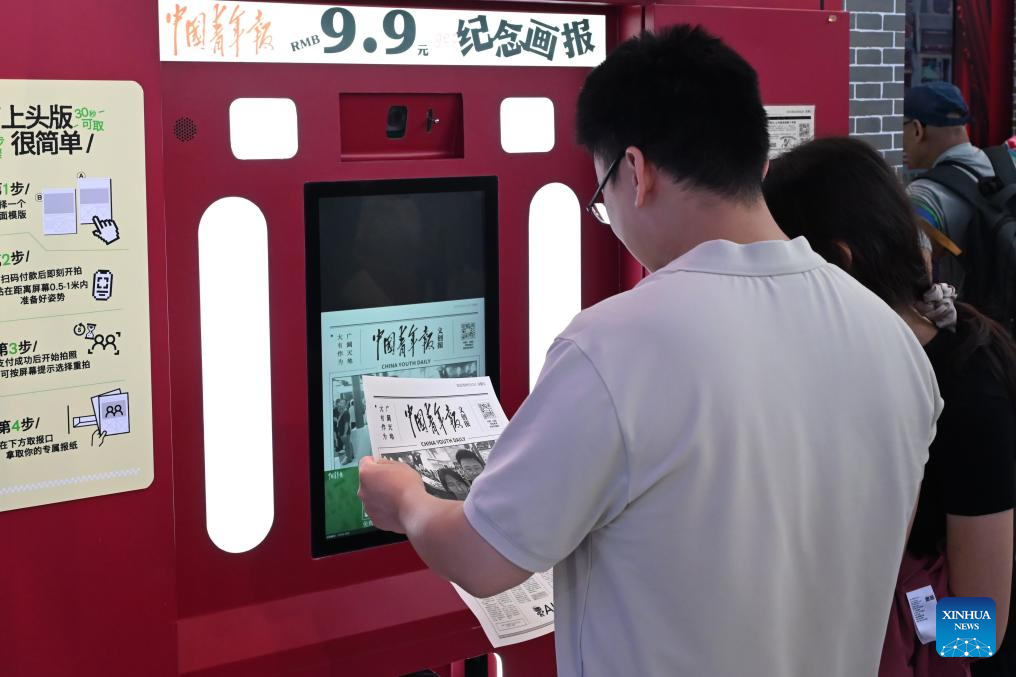 People make commemorative posters at the 2025 China International Fair for Trade in Services (CIFTIS) in Beijing, capital of China, Sept. 12, 2025. The 2025 CIFTIS is held from Sept. 10 to 14 at the Shougang Park in Beijing. This year's fair features a wide range of cultural and creative products, which are highly popular among visitors. (Xinhua/Sui Shangjun)