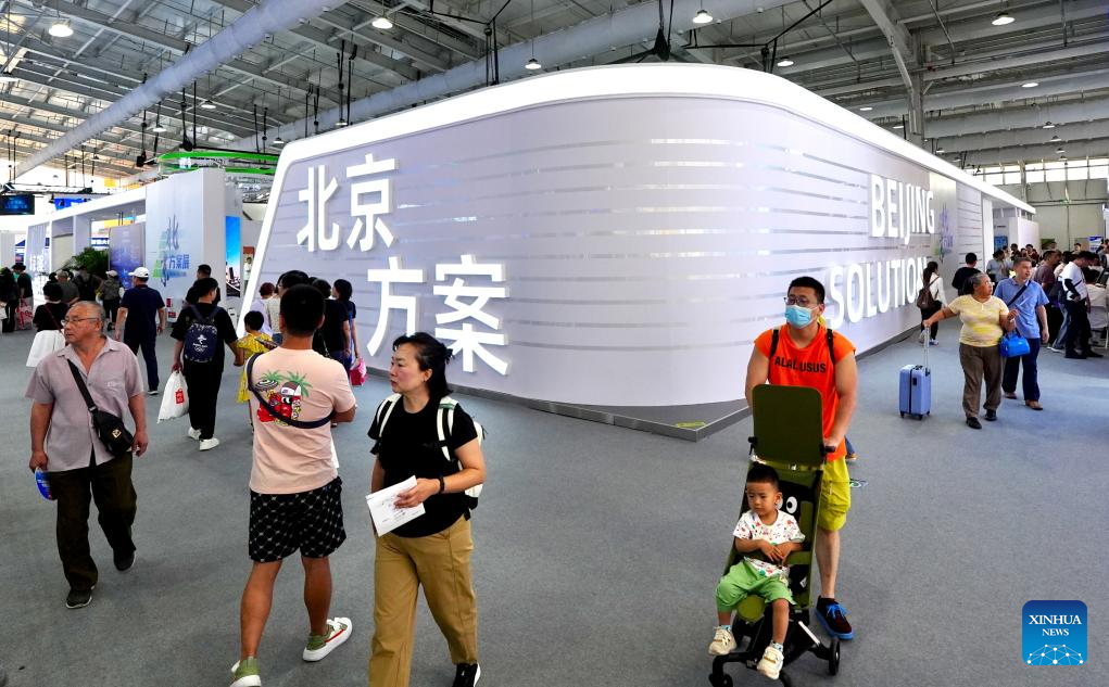 People visit Beijing Solution exhibition area of the 2025 China International Fair for Trade in Services (CIFTIS) at Shougang Park in Beijing, capital of China, Sept. 13, 2025. The 2025 CIFTIS opens to the general public from Sept. 13 to 14. Visitors with reservation can access the fair free of charge. (Xinhua/Chen Yehua)