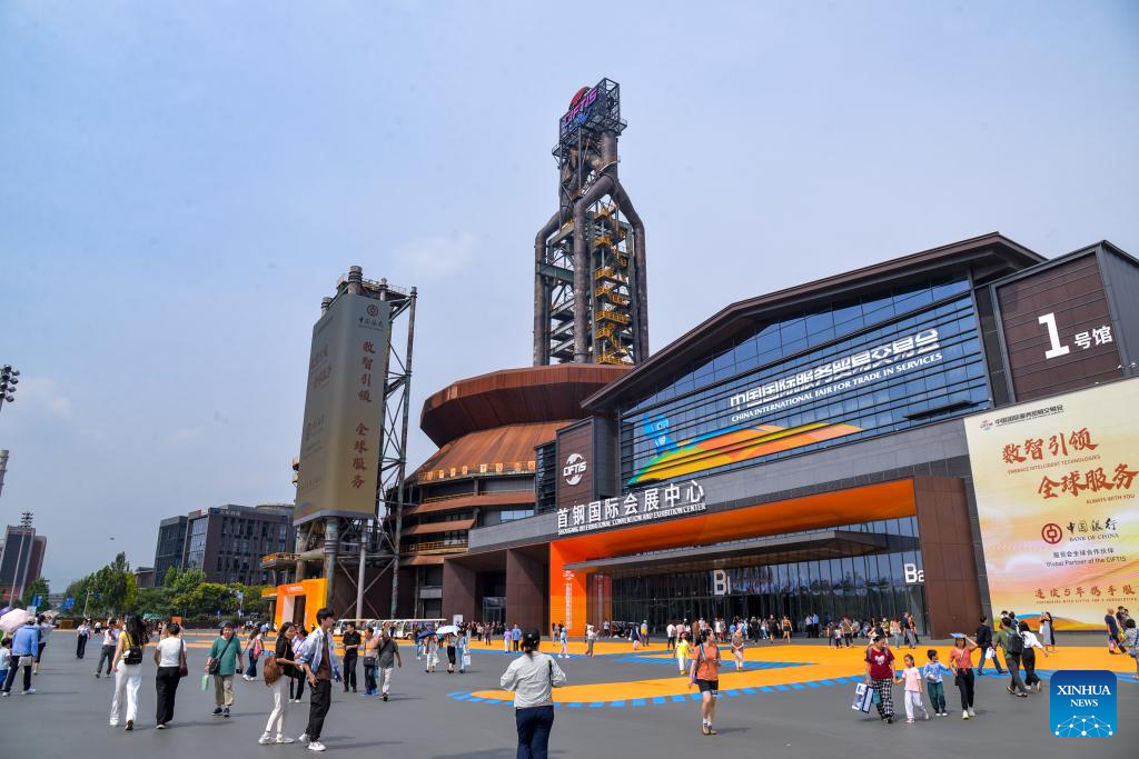 People visit the 2025 China International Fair for Trade in Services (CIFTIS) at Shougang Park in Beijing, capital of China, Sept. 13, 2025. The 2025 CIFTIS opens to the general public from Sept. 13 to 14. Visitors with reservation can access the fair free of charge. (Xinhua/Chen Yehua)