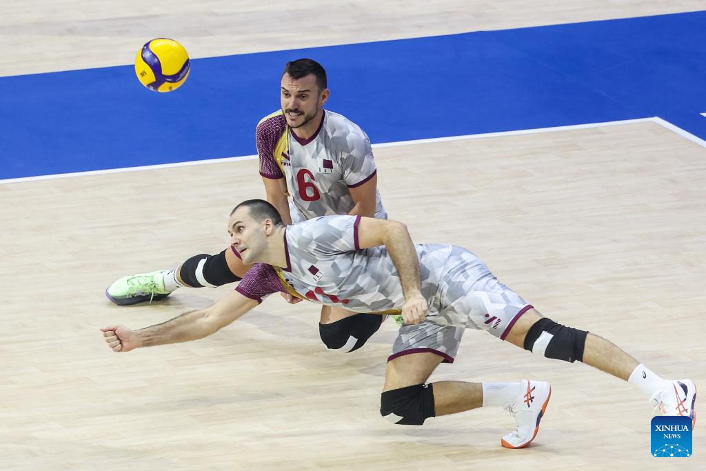 Borislav Georgiev of Qatar competes during the Pool B match between the Netherlands and Qatar at the 2025 FIVB Volleyball Men's World Championship in Quezon City, the Philippines, Sept. 13, 2025. (Xinhua/Rouelle Umali)