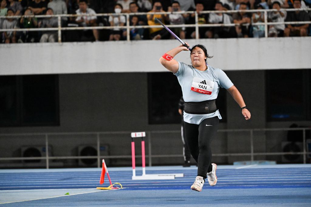 Chinese athletes claimed four victories out of 14 events at the 2025 World Athletics Continental Tour in Beijing on Sept. 7, with youth talent Yan Ziyi claiming the women's javelin with 64.46 meters.
