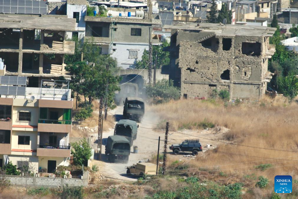 The photo shows Lebanese army trucks transporting heavy weapons handed over from the Ain el Helweh camp in Sidon, Lebanon, on Sept. 13, 2025. Palestinian factions in refugee camps in northern and southern Lebanon handed over weapons to the Lebanese army on Saturday, local media reported. (Photo by Ali Hashisho/Xinhua)