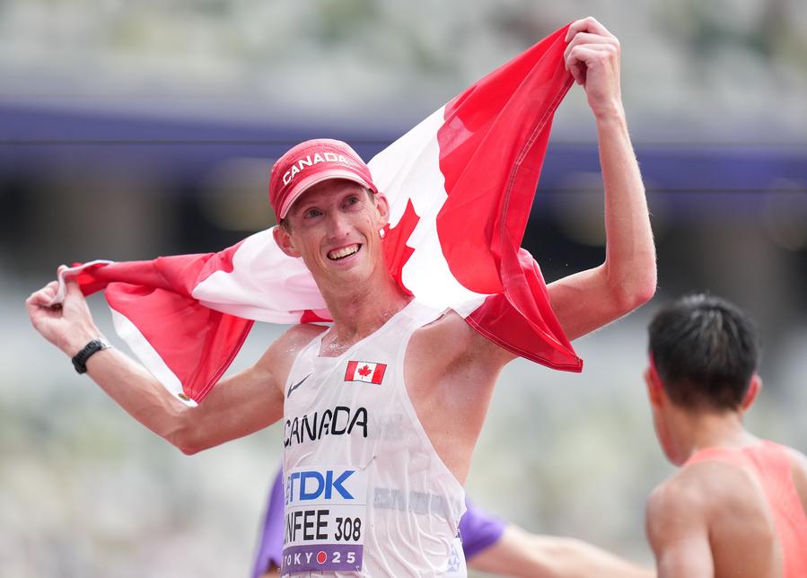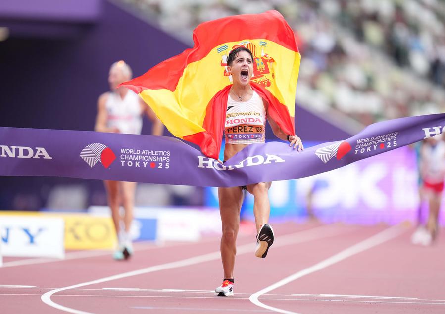 TOKYO, Sept. 13 (Xinhua) -- Spaniard Maria Perez retained her 35-kilometer race walk title at the 2025 World Athletics Championships in Tokyo while Canada's Evan Dunfee came from behind to win his first world title in the men's 35km race walk on Saturday.