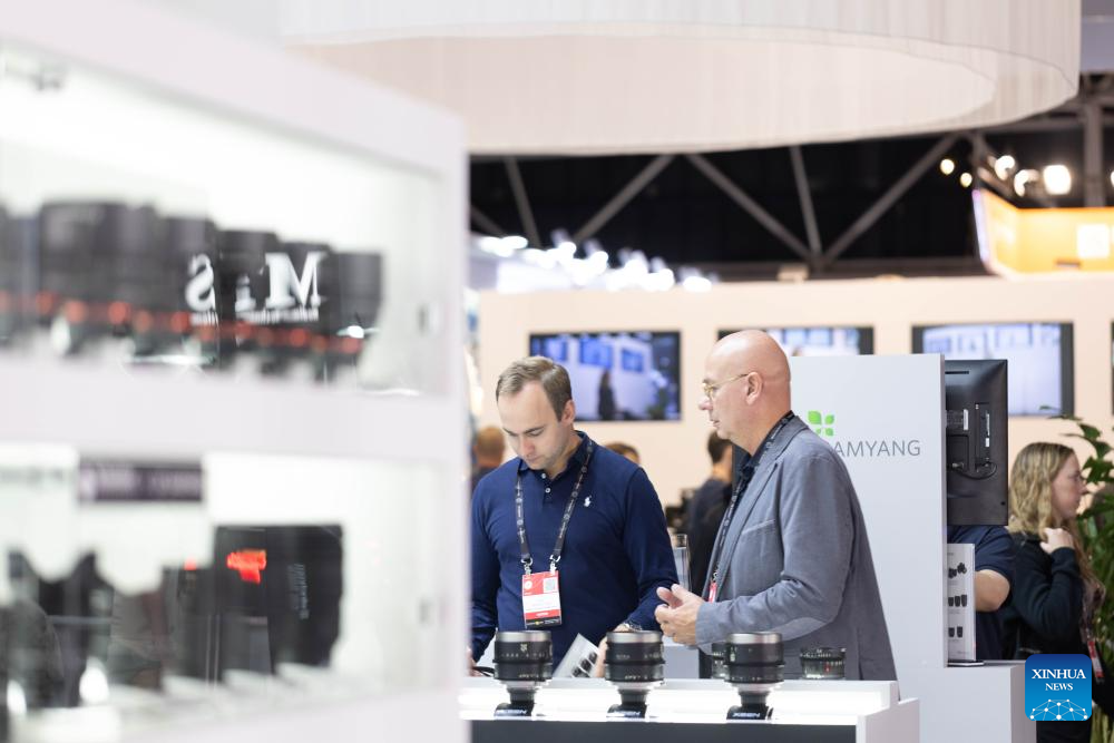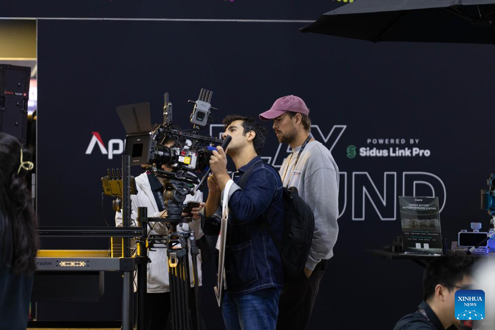 People visit the International Broadcasting Convention (IBC) 2025 in Amsterdam, the Netherlands, Sept. 12, 2025. The IBC is an annual international event in the media, entertainment, and technology industries. (Photo by Sylvia Lederer/Xinhua)