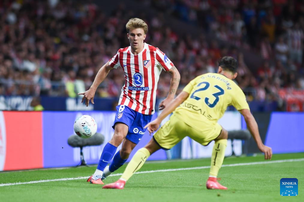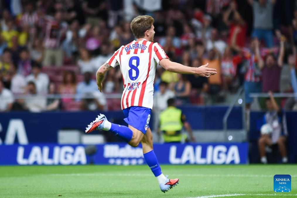 Pablo Barrios of Atletico de Madrid celebrates after scoring during the La Liga football match between Atletico de Madrid and Villarreal CF in Madrid, Spain, on Sept. 13, 2025. (Photo by Gustavo Valiente/Xinhua)