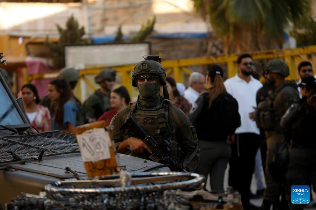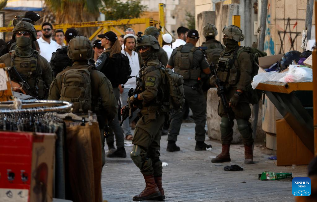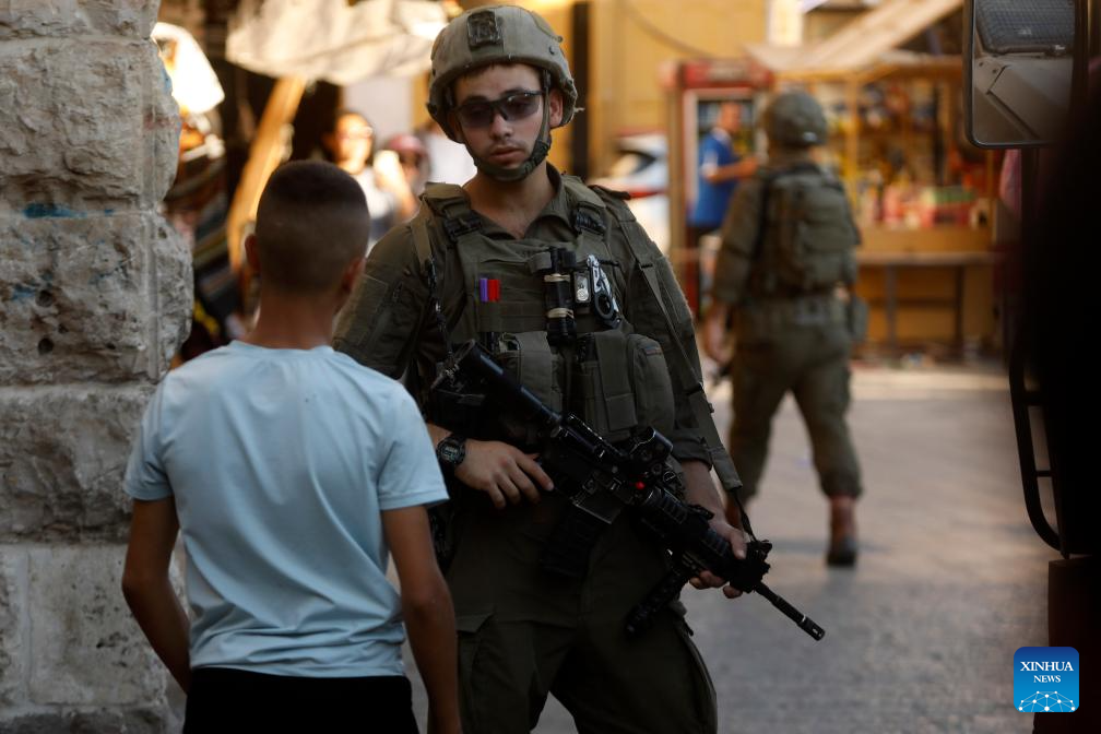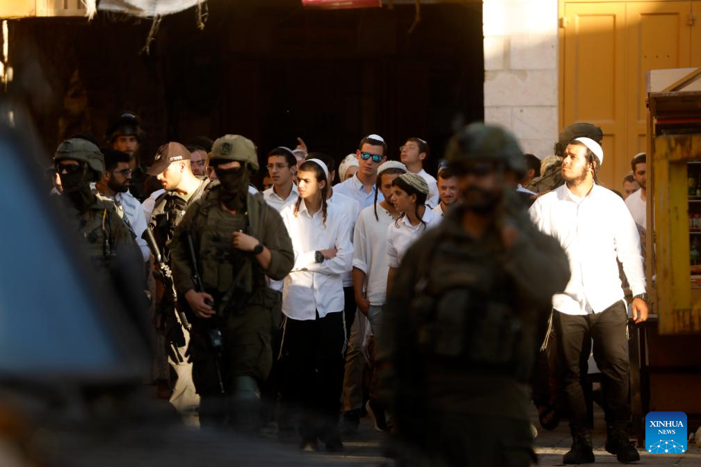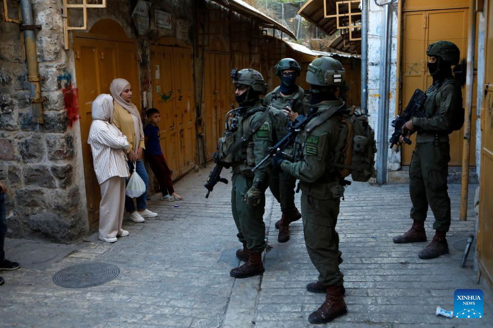 Members of Israeli forces secure the streets for Israeli settlers in the Old City of Hebron in the southern West Bank, on Sept. 13, 2025. (Photo by Mamoun Wazwaz/Xinhua)