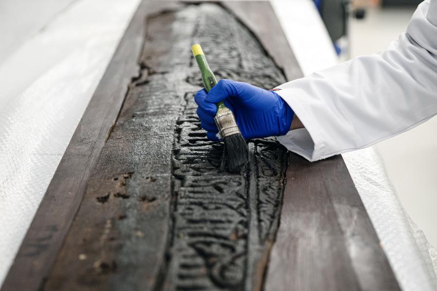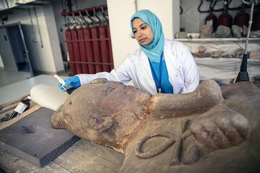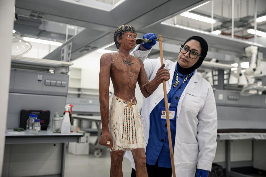 CAIRO, Sept. 13 (Xinhua) -- While visitors wander the sunlit halls above, marveling at treasures carved millennia ago, a quieter, more meticulous drama unfolds beneath their feet, in the shadowed depths of the National Museum of Egyptian Civilization (NMEC).