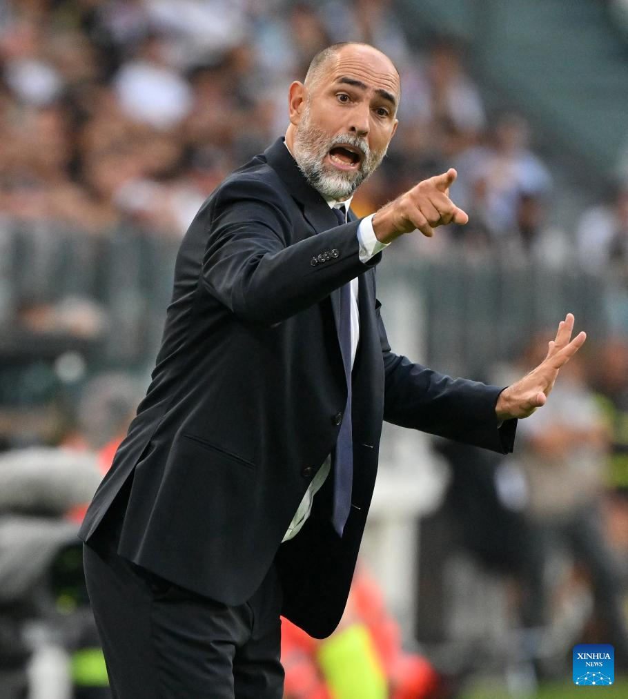 Juventus' head coach Igor Tudor reacts during a Serie A soccer match between Juventus and Inter Milan in Turin, Italy, Sept. 13, 2025. (Xinhua)