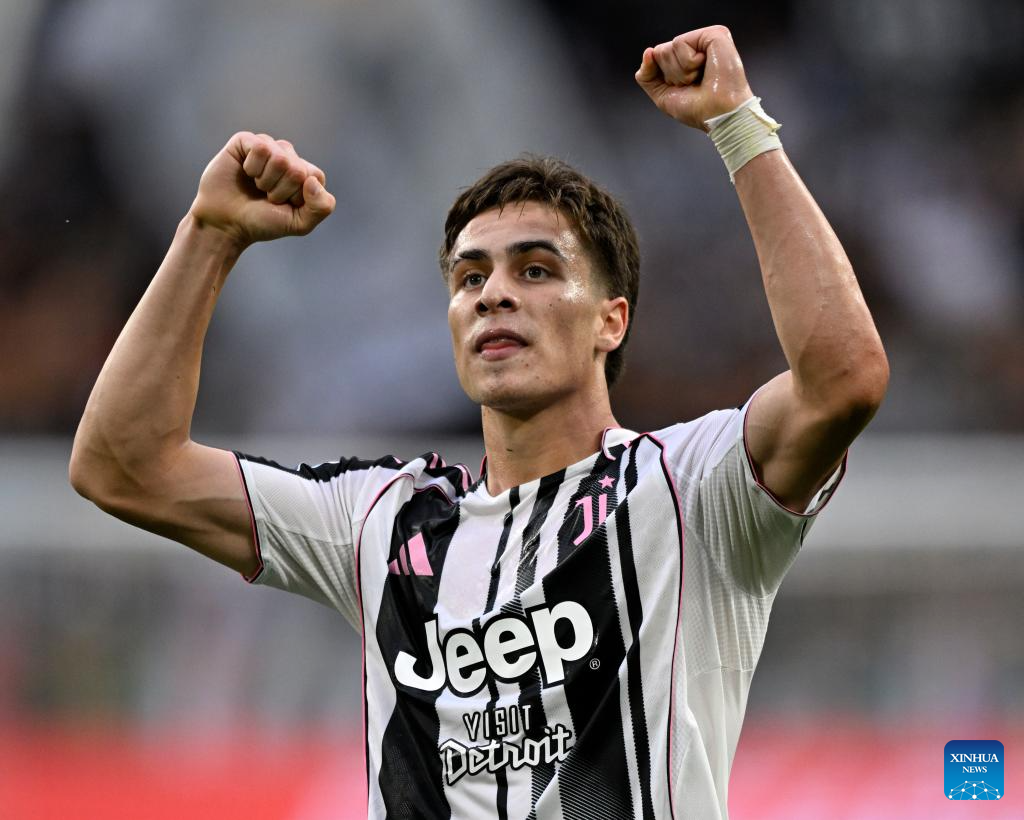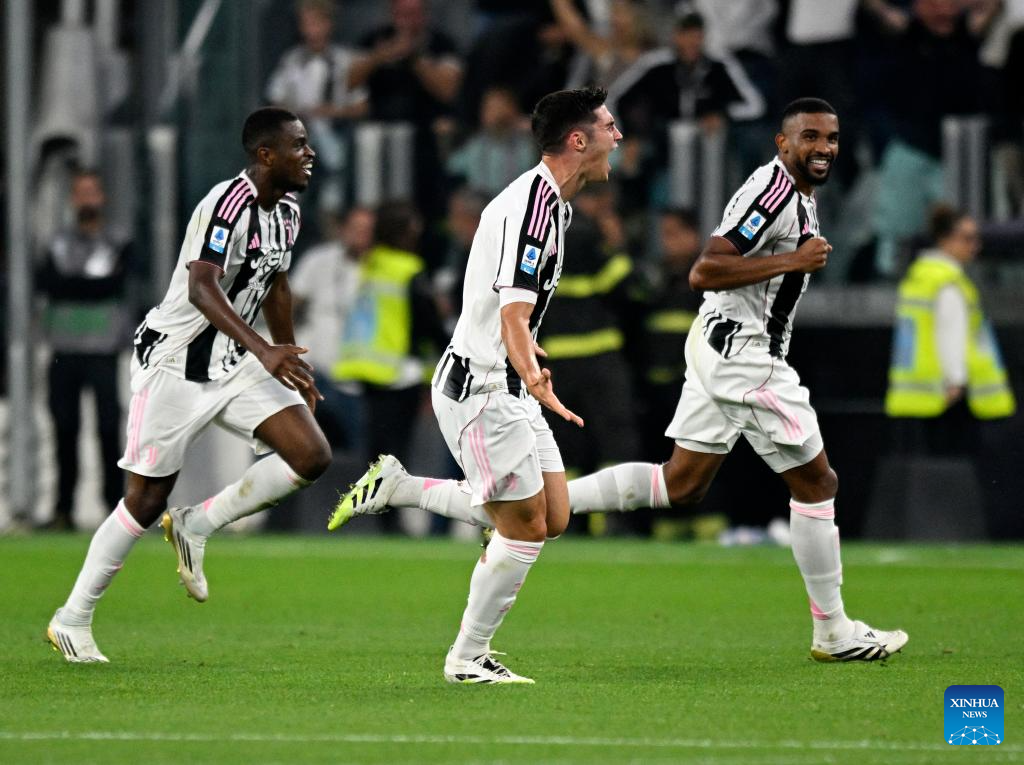 Juventus' Vasilije Azdic (C) celebrates his goal during a Serie A soccer match between Juventus and Inter Milan in Turin, Italy, Sept. 13, 2025. (Xinhua)