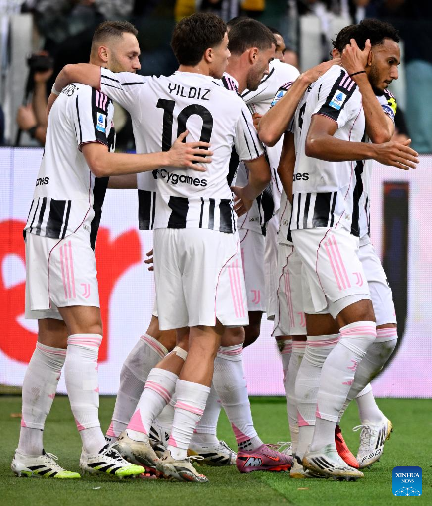 Juventus' Khephren Thuram (1st L) celebrates his goal with teammates during a Serie A soccer match between Juventus and Inter Milan in Turin, Italy, Sept. 13, 2025. (Xinhua)