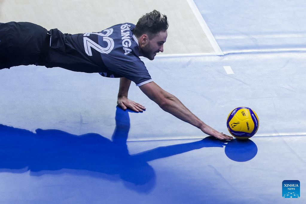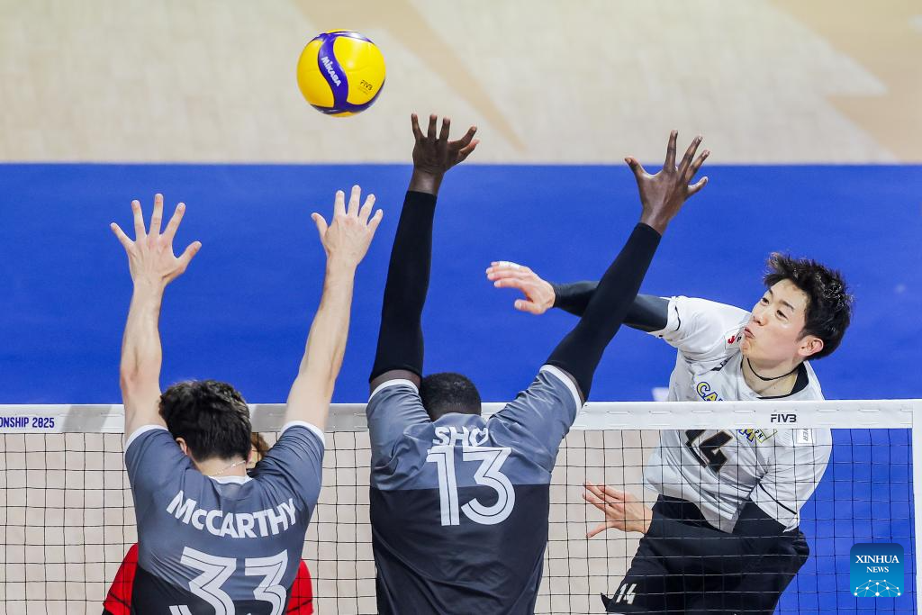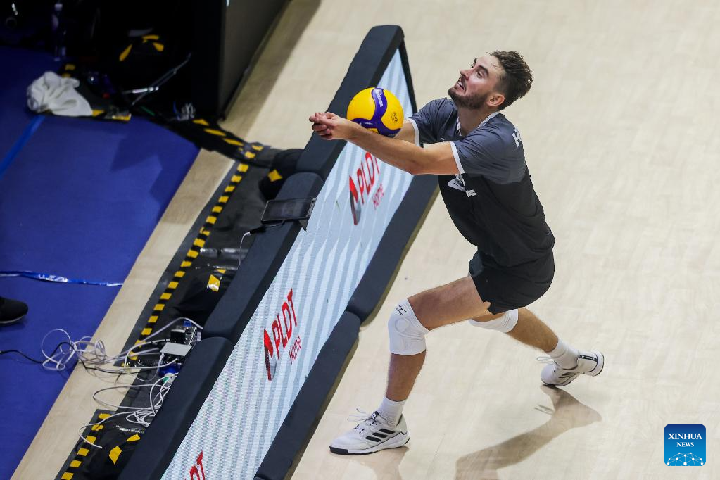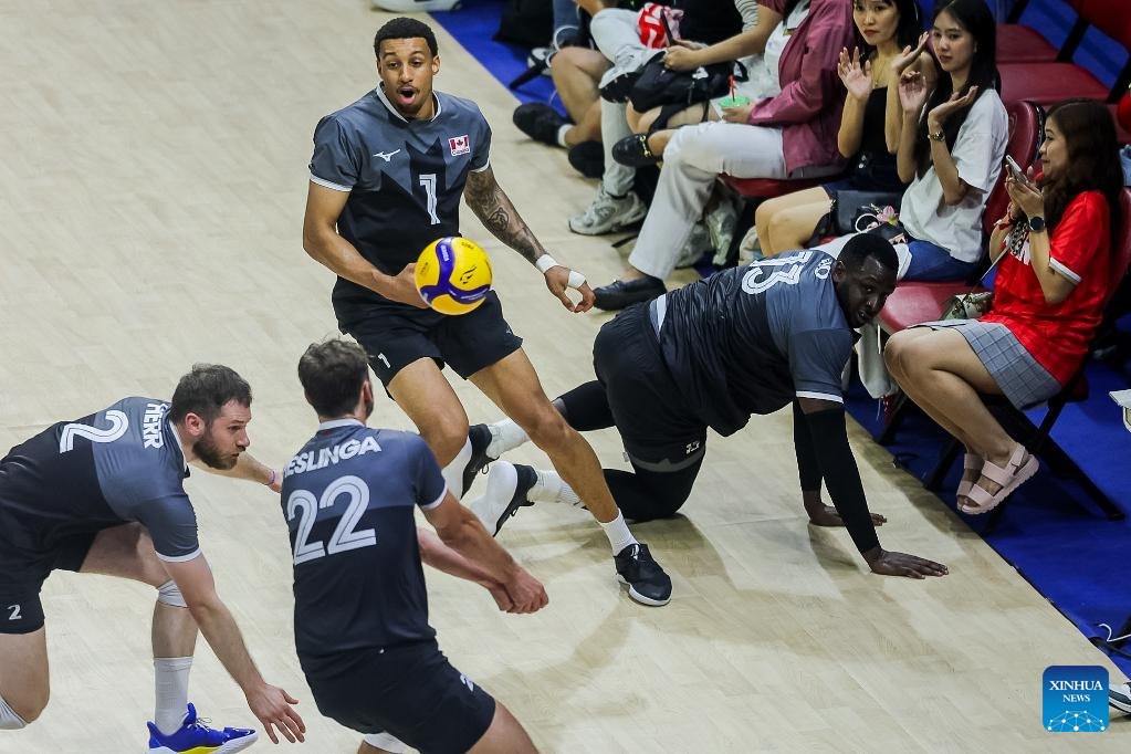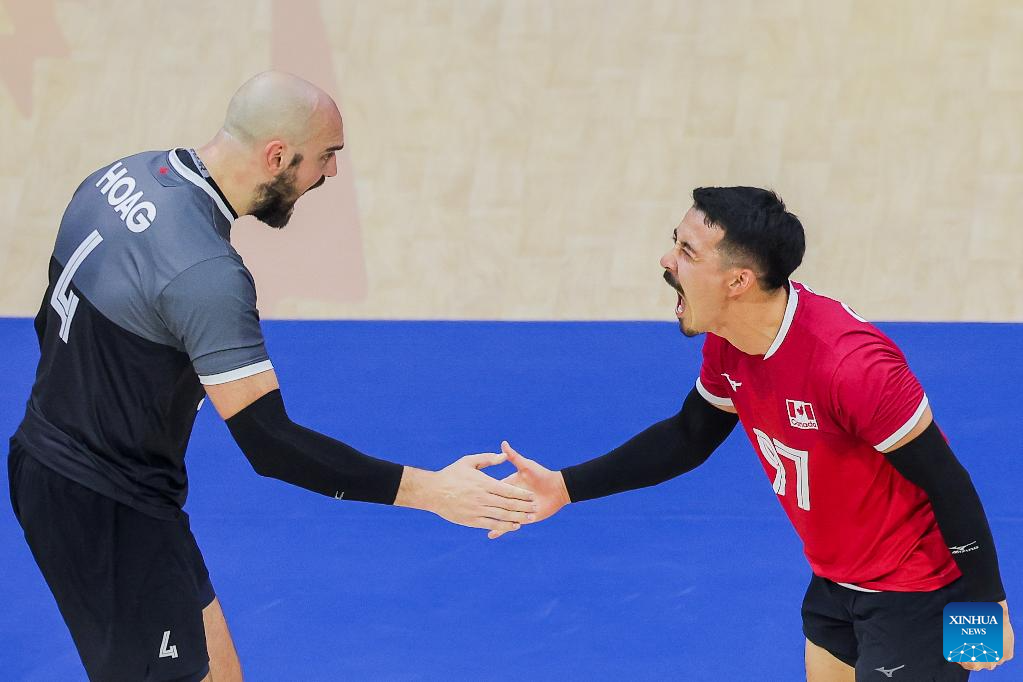 Players of Canada compete during the pool G match between Canada and Japan at the FIVB Men's World Championship 2025 in Quezon City, the Philippines, on Sept. 15, 2025. (Xinhua/Rouelle Umali)