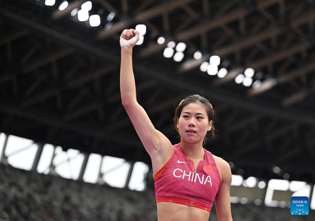 Niu Chunge of China competes during the women's pole vault qualification at the 2025 World Athletics Championships in Tokyo, Japan, Sept. 15, 2025. (Xinhua/Lui Siu Wai)