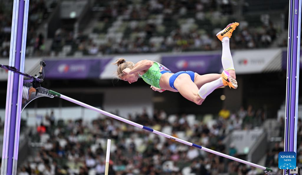 Tina Sutej of Slovenia competes during the women's pole vault qualification at the 2025 World Athletics Championships in Tokyo, Japan, Sept. 15, 2025. (Xinhua/Song Yanhua)
