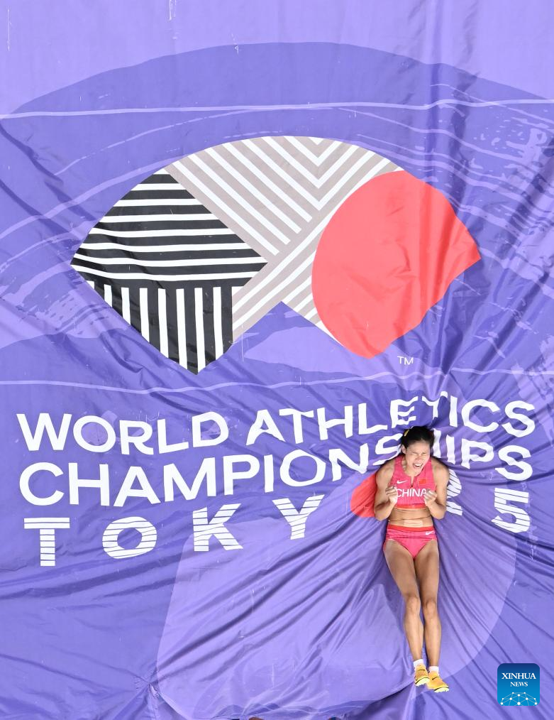 Niu Chunge of China reacts during the women's pole vault qualification at the 2025 World Athletics Championships in Tokyo, Japan, Sept. 15, 2025. (Xinhua/Song Yanhua)