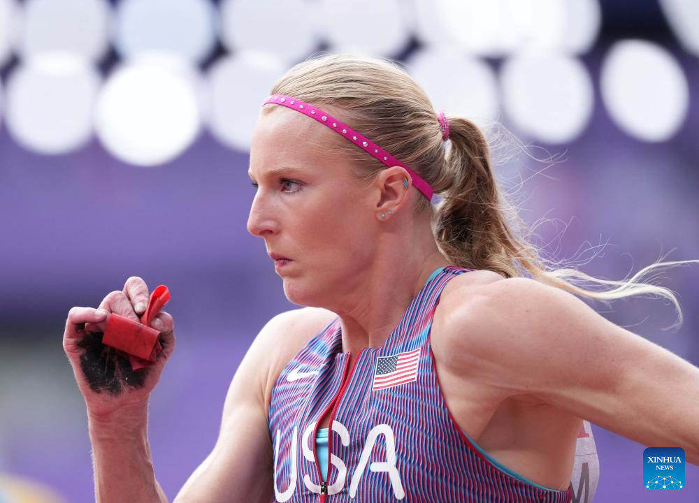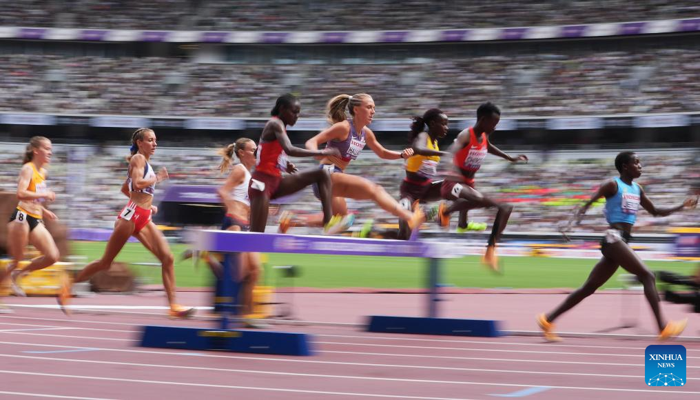 Lexy Halladay (C) of the United States competes during the women's 3000m steeplechase heat at the 2025 World Athletics Championships in Tokyo, Japan, Sept. 15, 2025. (Xinhua/Li Gang)