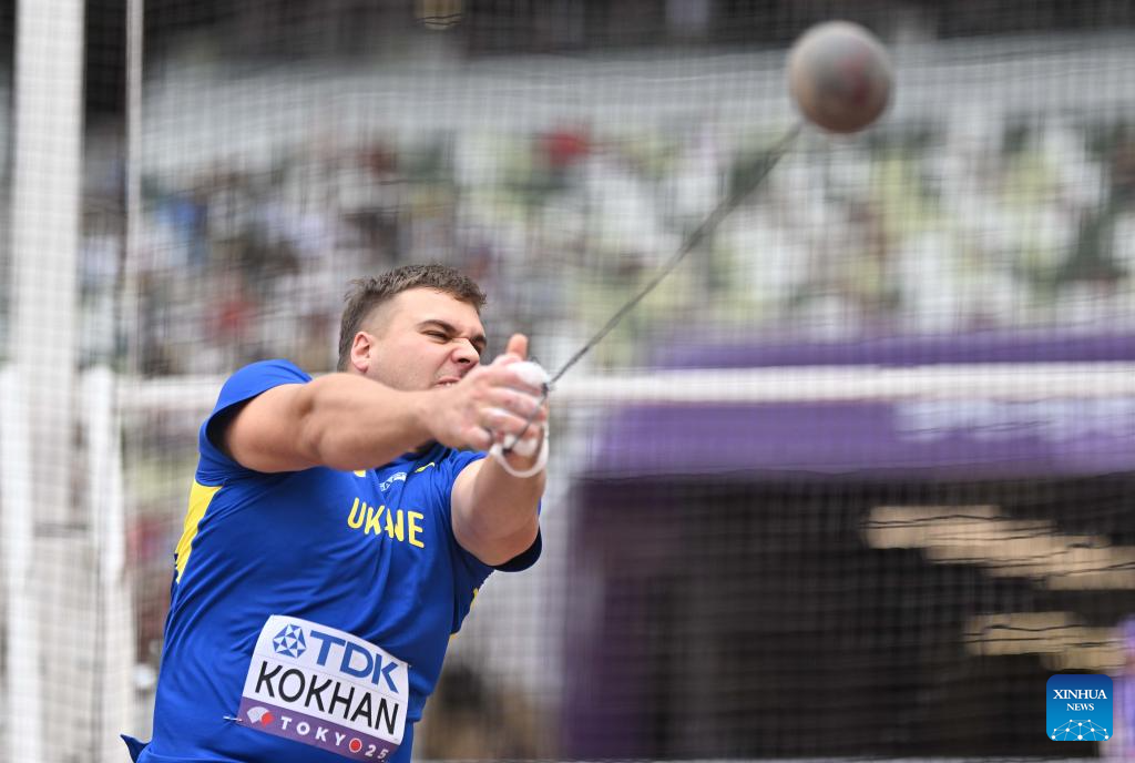 Mykhaylo Kokhan of Ukraine competes during the men's hammer throw qualification at the 2025 World Athletics Championships in Tokyo, Japan, Sept. 15, 2025. (Xinhua/Song Yanhua)