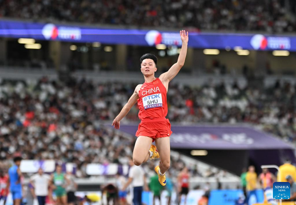 Shu Heng of China competes during the men's long jump qualification at the 2025 World Athletics Championships in Tokyo, Japan, Sept. 15, 2025. (Xinhua/Song Yanhua)