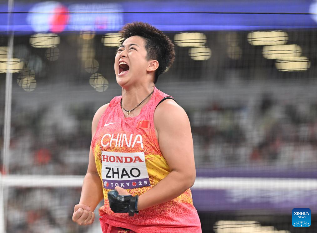 Zhao Jie of China competes during the women's hammer throw final at the 2025 World Athletics Championships in Tokyo, Japan, Sept. 15, 2025. (Xinhua/Song Yanhua)