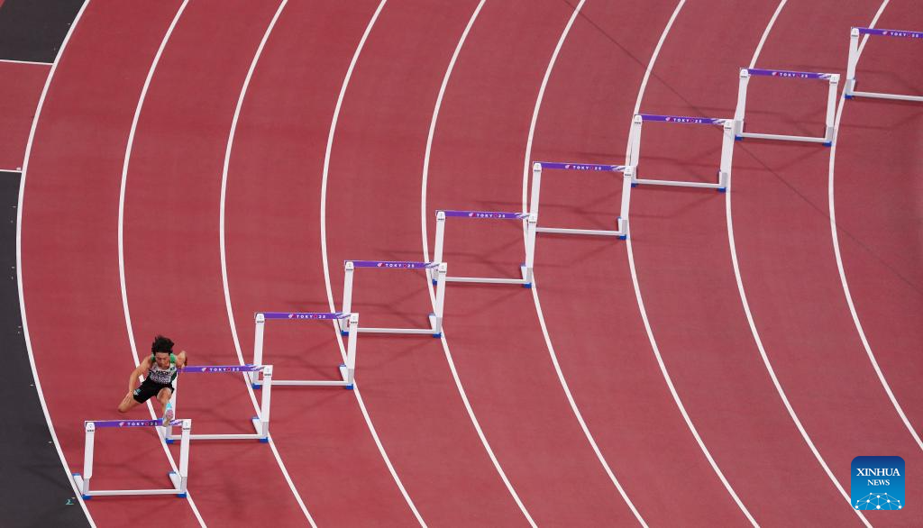 Cheong Chi Chong of Macao competes during the men's 400m hurdles at the 2025 World Athletics Championships in Tokyo, Japan, Sept. 15, 2025. (Xinhua/Jia Haocheng)