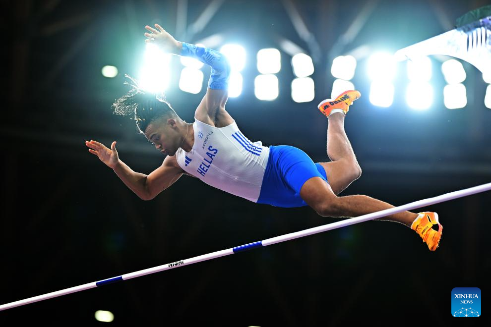 Emmanouil Karalis of Greece competes during the men's pole vault final at the 2025 World Athletics Championships in Tokyo, Japan, Sept. 15, 2025. (Xinhua/Song Yanhua)