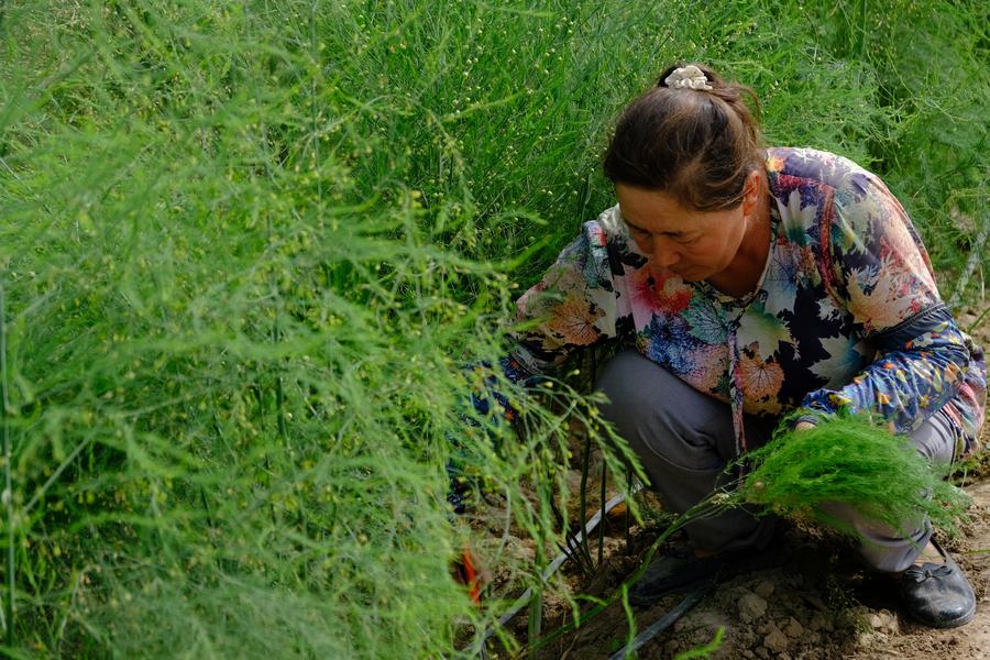 URUMQI, Sept. 15 (Xinhua) -- On the Pamir Plateau, where herds graze the slopes and wheat has long sustained villages, asparagus was never part of the story. This changed last spring, when Nurbiye Azizi bent down, snapped off a green shoot, and tasted asparagus for the first time.