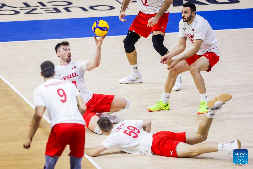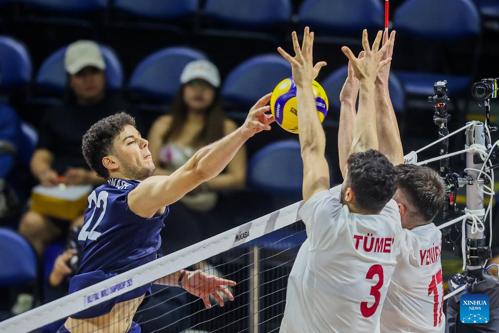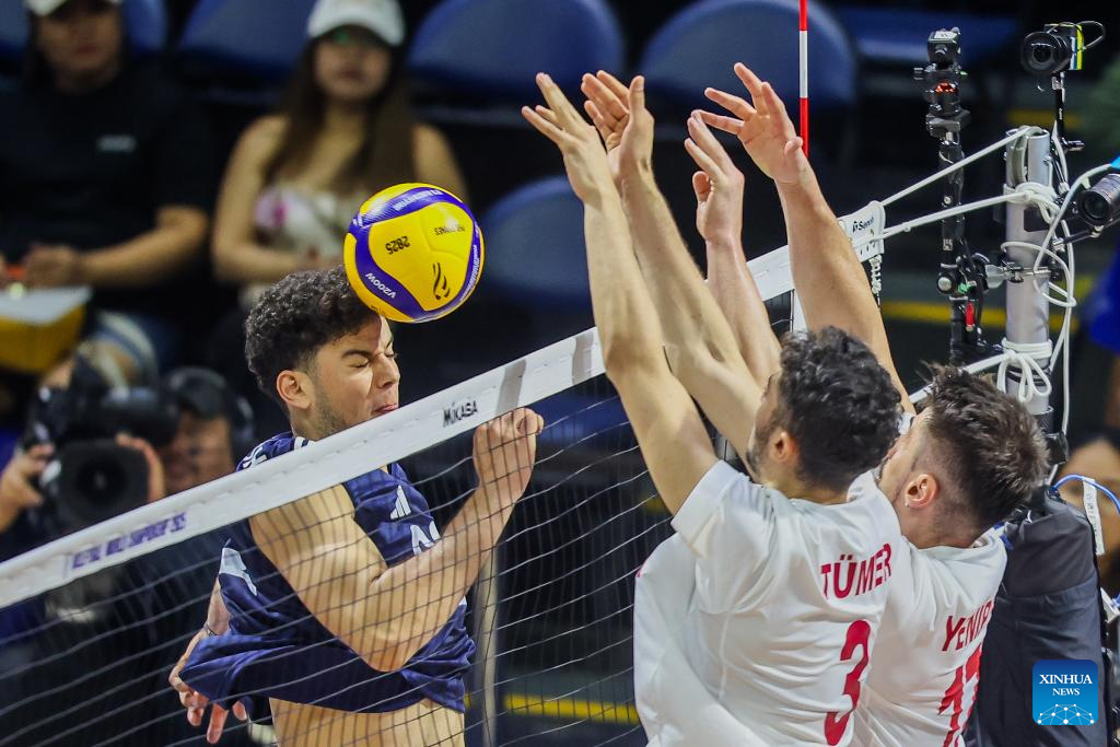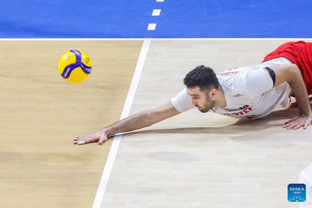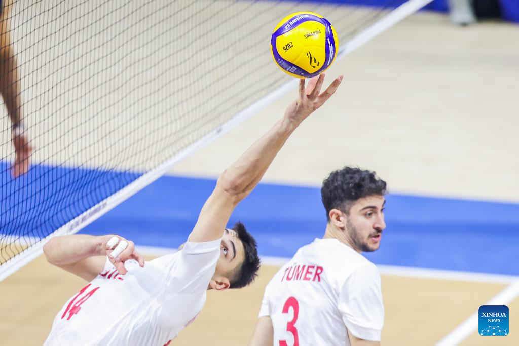 Players of Türkiye compete during the pool G match between Türkiye and Libya at the FIVB Men's World Championship 2025 in Quezon City, the Philippines, on Sept. 15, 2025. (Xinhua/Rouelle Umali)