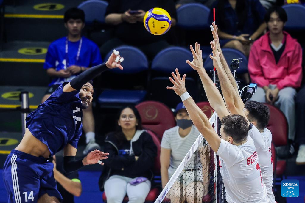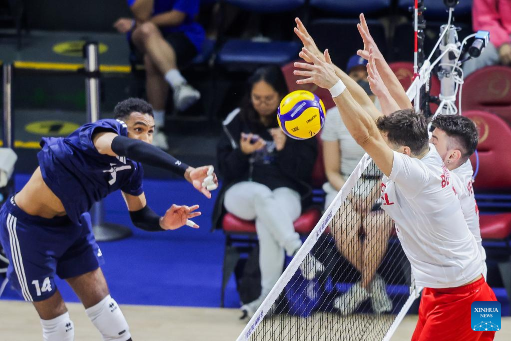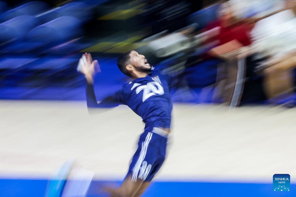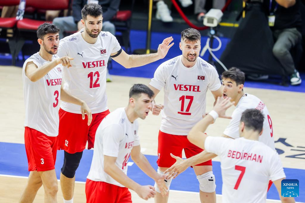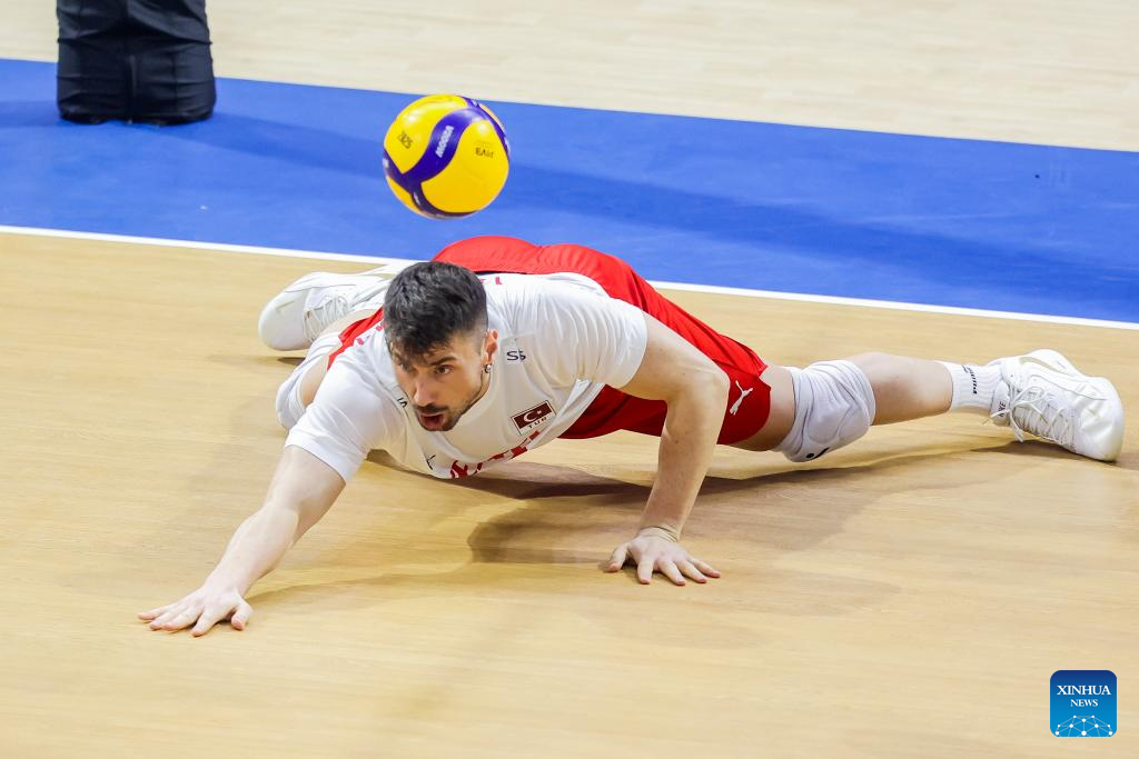 Players of Türkiye compete during the pool G match between Türkiye and Libya at the FIVB Men's World Championship 2025 in Quezon City, the Philippines, on Sept. 15, 2025. (Xinhua/Rouelle Umali)