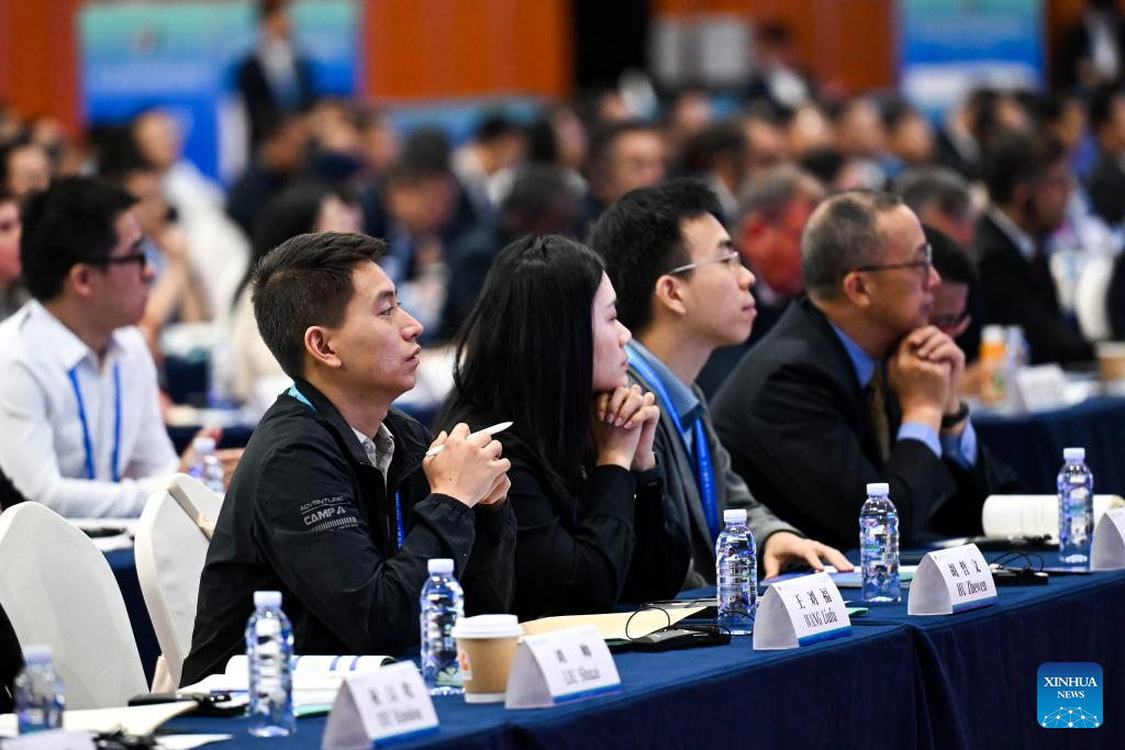 Attendees are pictured during the opening ceremony of the 10th Kubuqi International Desert Forum in Ordos, north China's Inner Mongolia Autonomous Region, Sept. 16, 2025. The event kicked off here on Tuesday under the theme "Scientific Desertification Control, Green Development." (Xinhua/Li Zhipeng)