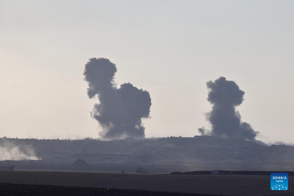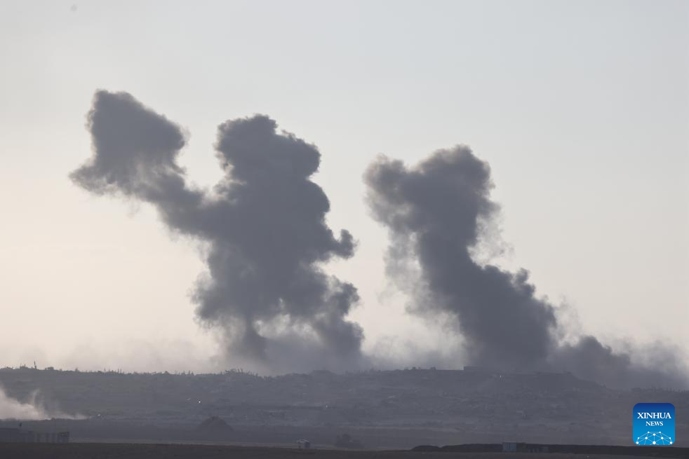 Smoke rises from damaged buildings in the Gaza Strip as seen from southern Israel, Sept. 16, 2025. Israel's military said on Tuesday it launched a "large-scale ground operation" in Gaza City overnight, as local officials reported heavy strikes in the enclave's biggest urban center that left dozens dead or missing. (Photo by Jamal Awad/Xinhua)
