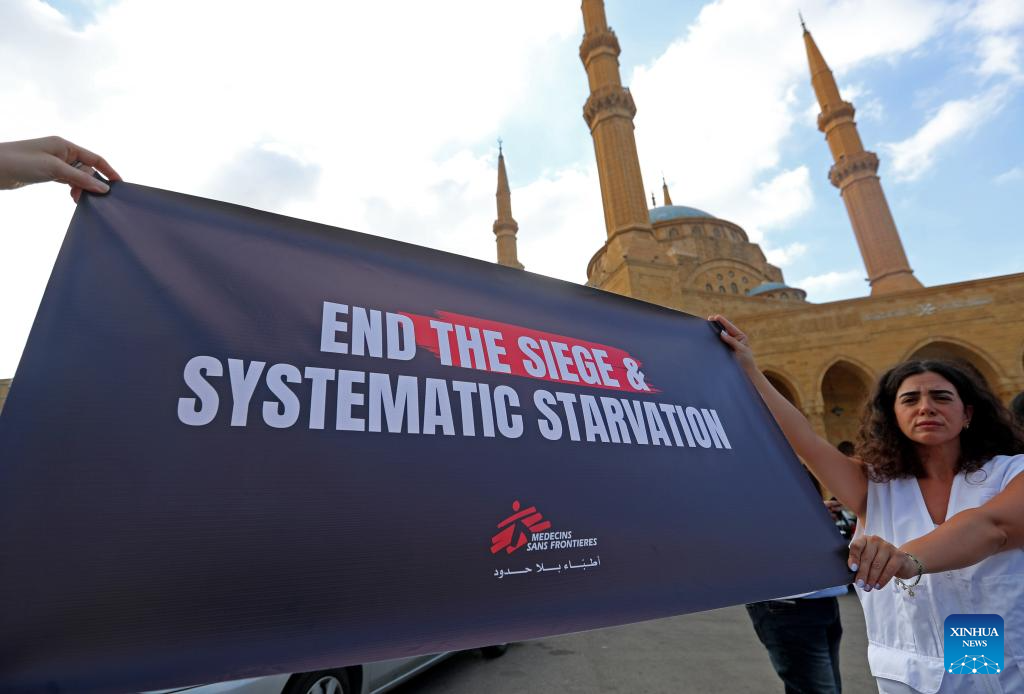 Participants join a solidarity stand for Gaza in Beirut, Lebanon, on Sept. 15, 2025. A solidarity stand was held in Beirut as part of Doctors Without Borders (MSF) global campaign for Gaza. (Xinhua/Bilal Jawich)